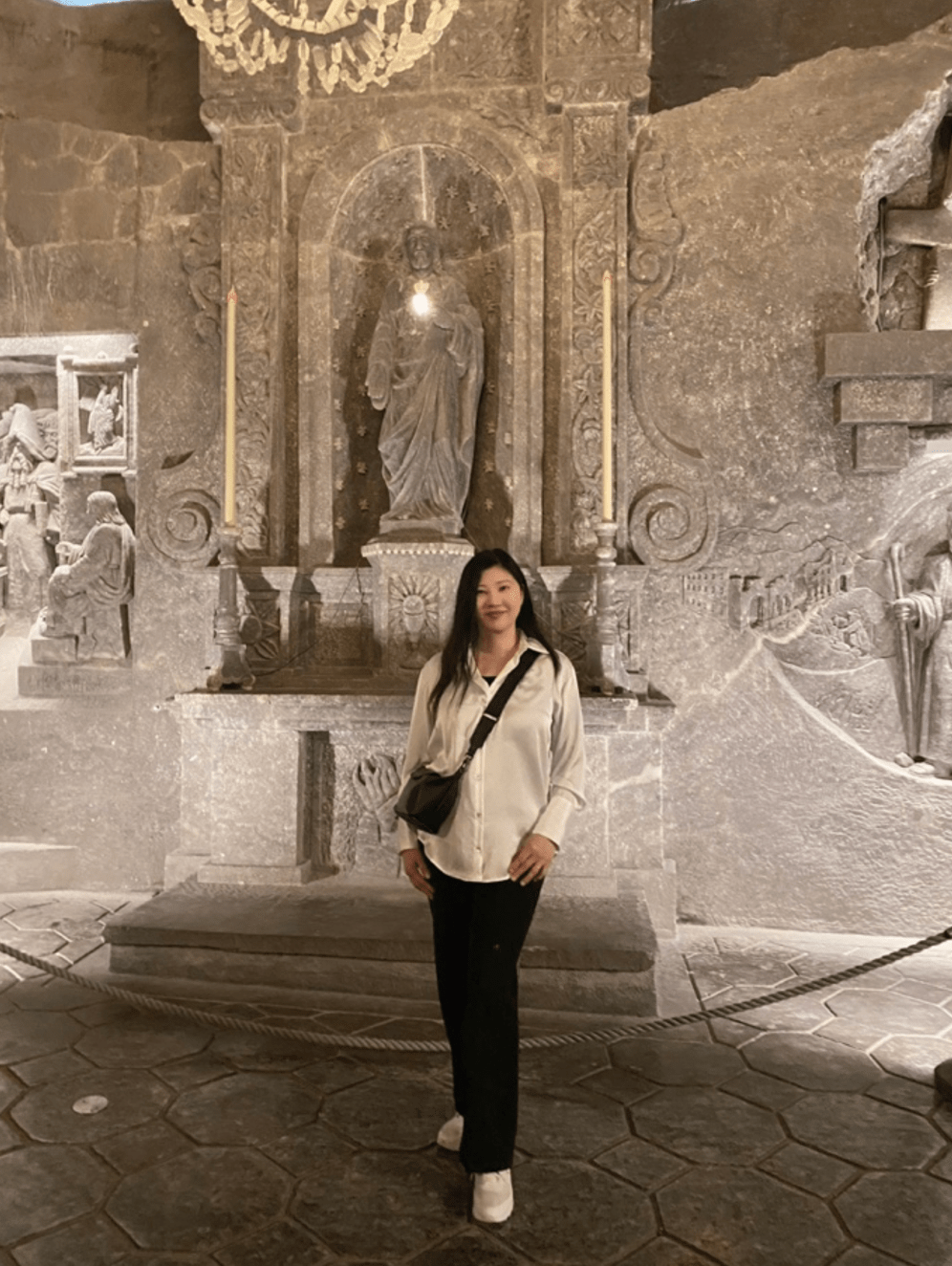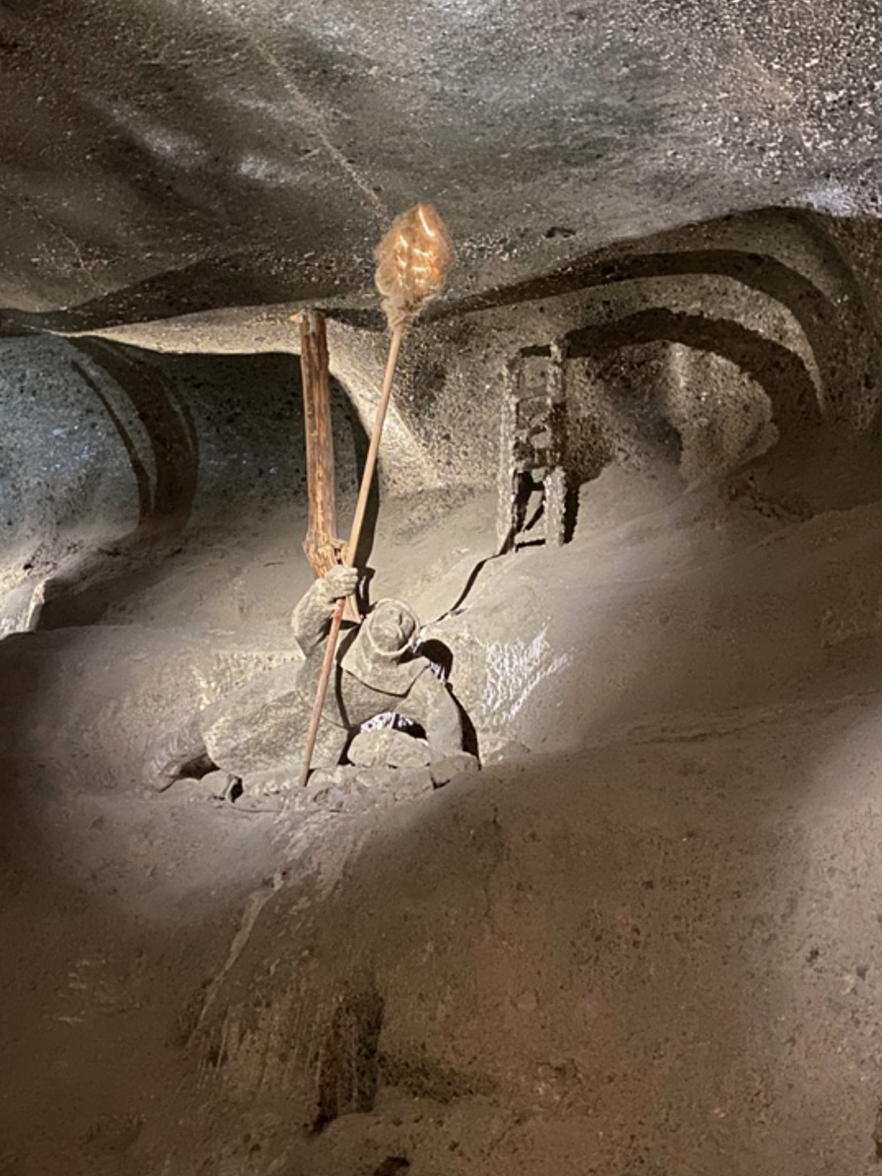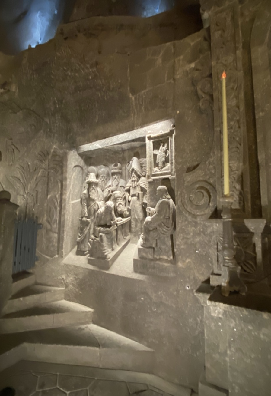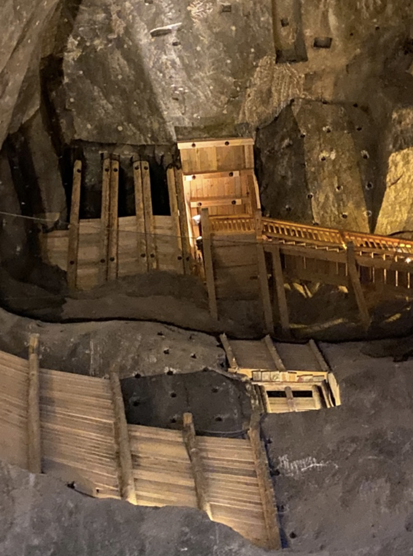 維利奇卡鹽礦礦已有 700 多年的歷史,礦井比艾菲爾鐵塔的高度還要深。我專心行走,聆聽著官方導遊的指令,官方導遊忽然停下,讓我們看看所在的位置的左右側都有鹽岩的雕刻作品,這些都是當時的鹽礦工人在工作之餘所創作。再繼續往前走,我看到鹽場保留了許多古老的工具和機械,這些遠古器械讓我們可以一窺13世紀之後的個階段鹽礦開採技術的演進。