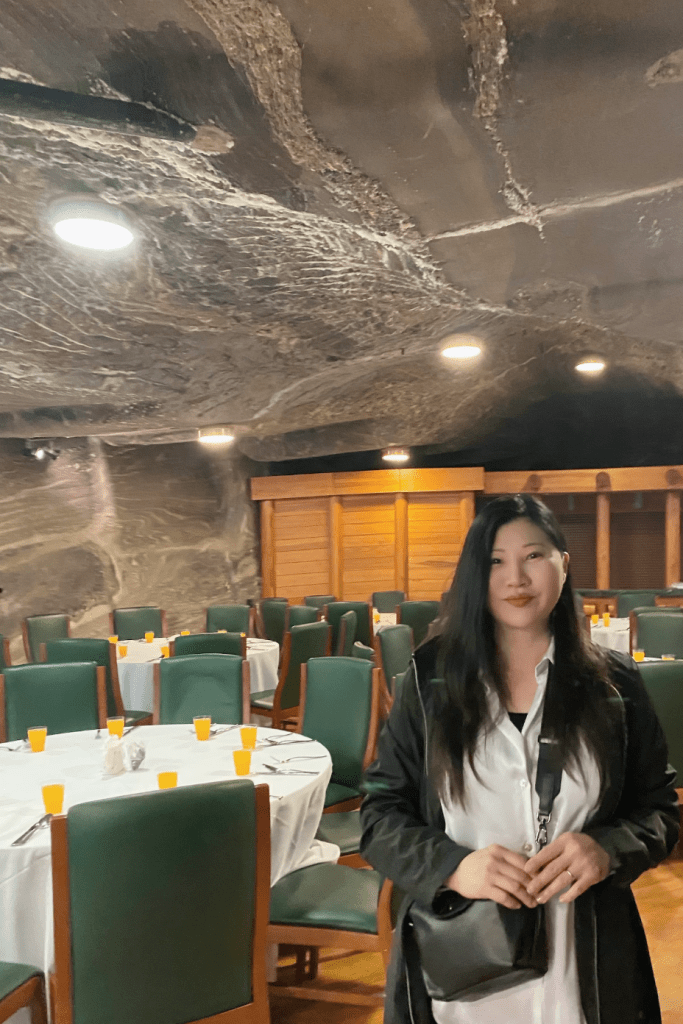 除此之外,維利奇卡鹽礦也在鹽礦內部開設餐廳(下圖),這樣可以增加維利奇卡鹽礦的營收,也讓人可以有機會體驗在鹽礦內部用餐的感受。那天我與我的大女兒在維利奇卡鹽礦參觀,看到鹽礦地下城的餐廳工作人員忙碌的擺放果汁,以及佈置場地。我詢問了餐廳工作人員,得知當天有人訂了此餐廳用餐。
